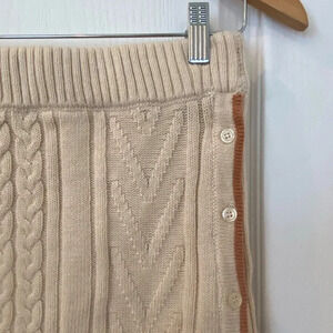 Monrow Womens NWT Cableknit Off White Wool Blend Skirt Size Small Button Up. This skirt is new with tag. Excellent condition. No flaws. Measurements: 13.5 inch waist 18 inch length 14 inch hip