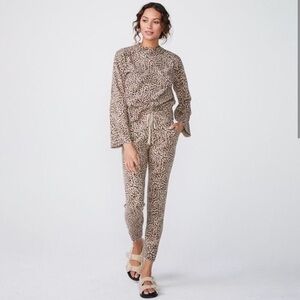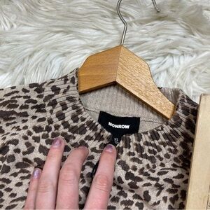 Monrow cashmere blend leopard print bell sleeve crew neck sweater