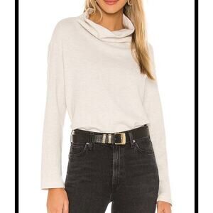 Monrow cowl neck waffle knit pullover in eggshell size XL