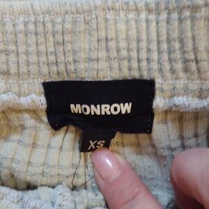Super cute and comfy stretchy knit flare ruffle cuff sweatpants by Monrow (found at Anthropologie ). Excellent condition no rips or stains. Little to no pilling. Size XS please see measurements pictures to be sure of fit. Length: 40in Inseam: 30in