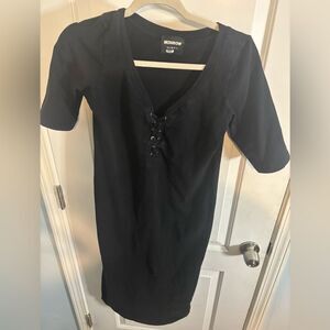 Monrow Black lace up Midi Maternity Dress size small EUC