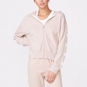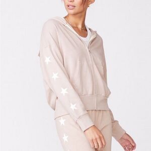 The Monrow Printed Star Boxy Hoodie in Taupe is the perfect lightweight full-zip sweatshirt. Pair this graphic sweatshirt with the matching Printed Star Shorts or your most lived-in sweats!