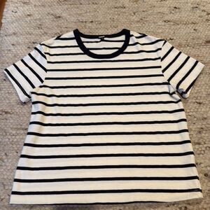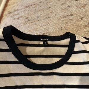 Monrow Striped 50s Vintage Short Sleeve Tee Black Creamy White Size Small. Has a more fitted style than the model pic. Way cuter in my opinion. Enjoy!