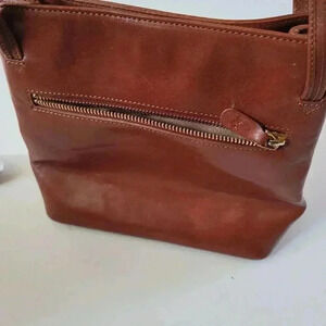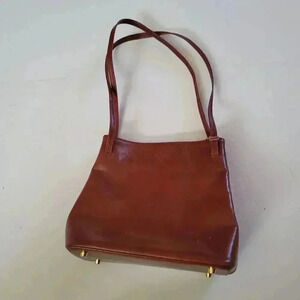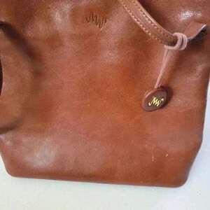Monsac Cognac Brown Leather Tote Shopper Preppy Boho Chic Vintage Medium Size