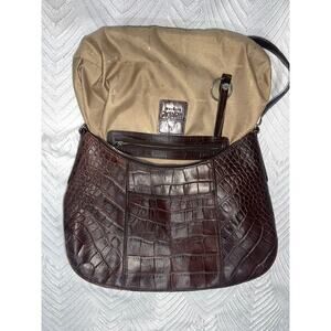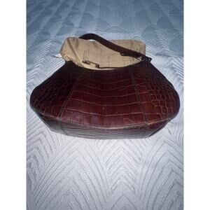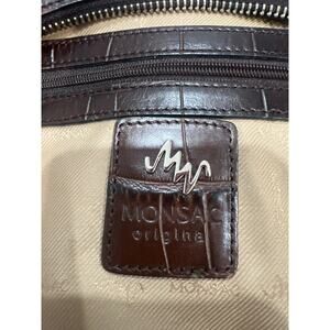 Monsac Tan Leather Shoulder Bag Purse Handbag Croc Pattern Vintage