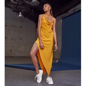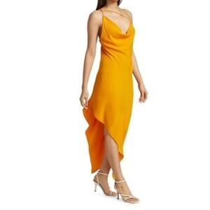 Monse Criss Cross Slip Dress in Marigold. Size 2. Features hidden side zip closure, cowl neck, spaghetti straps, versatile strap styling, asymmetrical hem, maxi length. 71% acetate, 28% viscose. NWT / New with tags. As seen on and worn by Kristin Cavallari and Gal Gadot. Retail $1290.