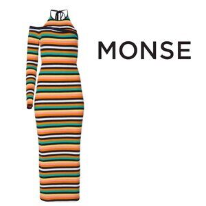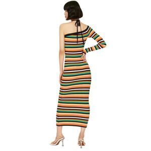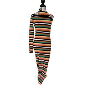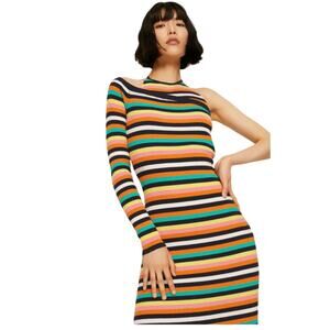 Stand out in this vibrant Monse dress featuring a striking multicolor stripe pattern. The one-shoulder design adds a modern twist to a classic silhouette. Perfect for any occasion.