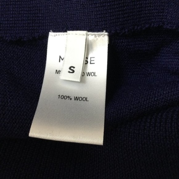 Monse Pearl Button Embellished Long Sleeved Neck Tie Knit Navy Blue Sweater