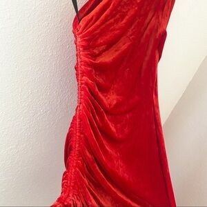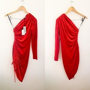 Monse Velvet One Shoulder Drawstring Asymmetric Dress Scarlet 4 NWT