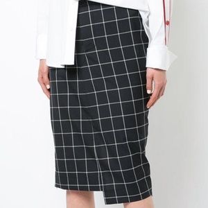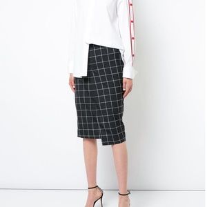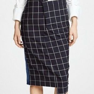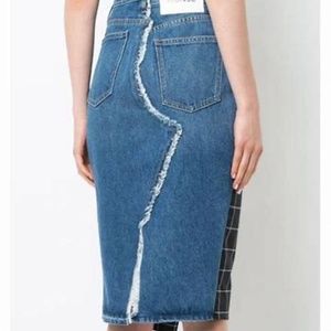 Monse new without tags denim and wool panel pencil skirt in US10. Material is 100% cotton and 100% wool combo. Skirt features hidden button front closure