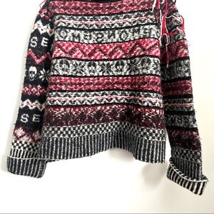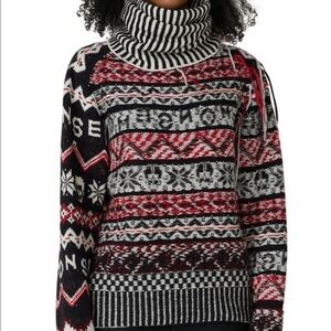 Black and red printed wool (100% Wool). Sweater. Long sleeves. Turtleneck.