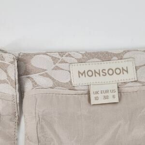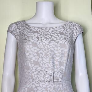 Monsoon Belted Sheath Dress US 6 UK 10 Beige White Floral Cap Sleeve Romantic