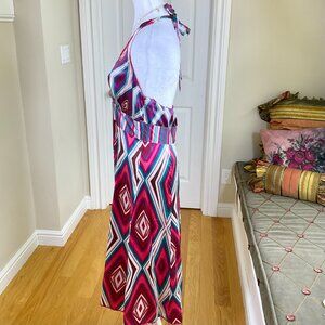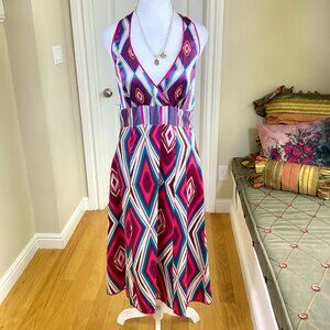 Monsoon Dress Silk Halter Multi Color Pink Blue Fit Flare Y2K (US 8)