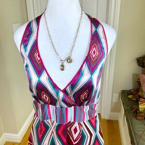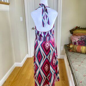 Monsoon Dress Silk Halter 00s Y2K Fit & Flare Multi Color Pink Blue Fit & Flare (US 8)