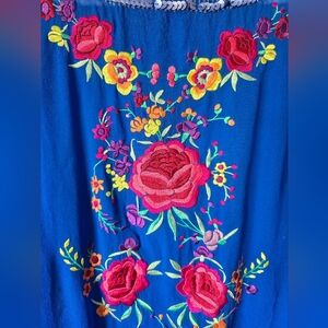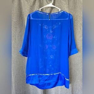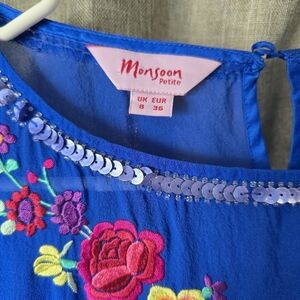 Monsoon Embroidered Floral Shift Mini Dress Blue 3/4 Slv Size (US 4) Silk