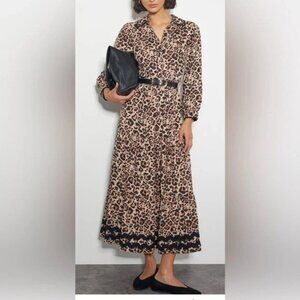 Embrace bold style with this leopard print maxi dress. Perfect for any occasion, this dress features a striking black and brown pattern. Pair it with your favorite accessories for a complete look. New with tags. Bx:17