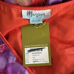 Monsoon Silk Blend Slip Dress US 8 UK 10 Pink Red Floral Maxi Bias Cut Romantic