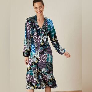 Monsoon Size 8 Bette Patch Print Long Sleeve Button Front Shirt Dress