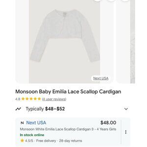Monsoon Toddler Cardigan Lightweight Sweater Girl Size 2-3 Holiday Party Autumn