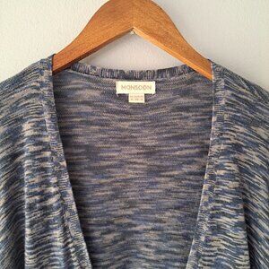Monsoon Women Buttons Up Long Cardigan Blue & Gray Size 4 V-Neck Pockets