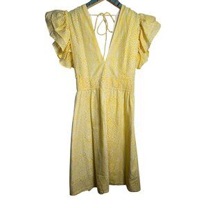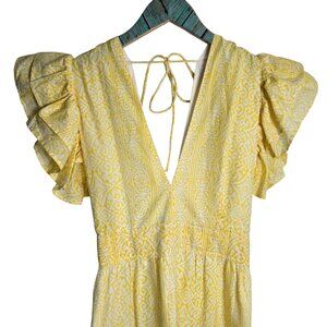 Monsoon and Beyond Handmade Chloe Yellow Ruffle Sleeve Deep V Midi Dress Sz M