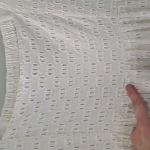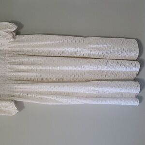Monsoon and Beyond Women Midi Dress Large Ivory Tier Eyelet Puff Sleeve Pockets