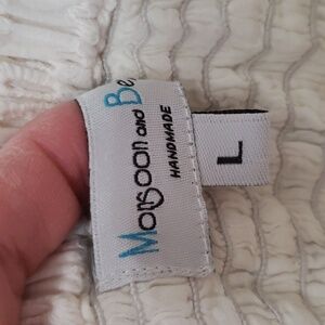 Monsoon and Beyond Women Handmade Midi Dress Large Ivory Tier Eyelet Puff Sleeve Pockets Sundress Cottagecore Beach Coastal Summer Spring Picnic