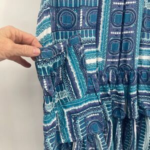 Monsoon Womens Blue Sleeveless Geometric Ruffled Dress Embellished Sequins Small