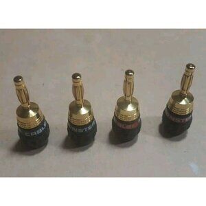 Upgrade your audio experience with these Monster Cable Speaker AMP Quick Lock Gold Plated Banana Plugs. The connectors come in a set of 2 blue and red pairs and are perfect for connecting your audio devices. The gold plated connectors ensure a superior sound quality and a secure connection.