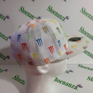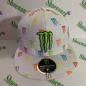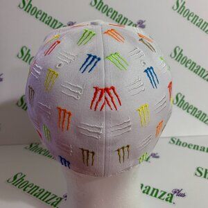 Monster Energy Hat Embroidered Multicolor Logo Flat Brim Fitted Cap White 7 1/4