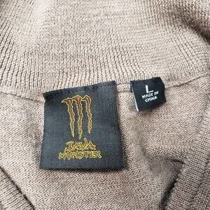 Monster Energy Java Merino Wool Blend 1/4 Zip Sweater Mens Large Brown Pullover