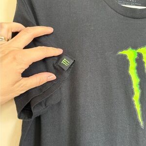 Monster Energy Men’s Medium Black Striped Logo Graphic Short Sleeve Shirt