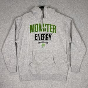 Monster Energy Sweatshirt Mens XL Grey Hoodie Pullover Spell Out