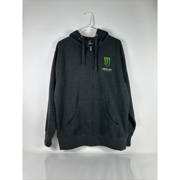 Monster Energy Zip-Up Hoodie Heather Charcoal Size Large SOFT