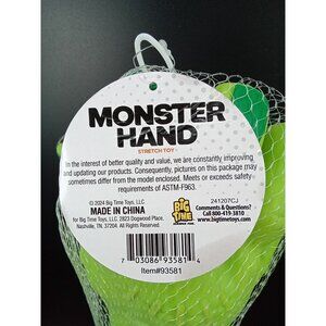 This Monster Hand Stretch Toy by ToyPlanet is a fun and interactive soft, stretchy, and squeezy toy designed for children ages 3 and up. The neon green hand features durable flexibility and can stretch up to 20 inches, offering hours of engaging play. Its tactile nature encourages sensory stimulation and exploration, making it both entertaining and satisfying to use. Packaged in a protective netting, it's compact and easy to store or transport. Crafted with safety in compliance with ASTM-F963 standards, this toy is manufactured under strict quality guidelines. Designed and distributed by Big Time Toys, LLC, this colorful and playful item is not only a fun accessory for kids but also a great collectible or gift option.