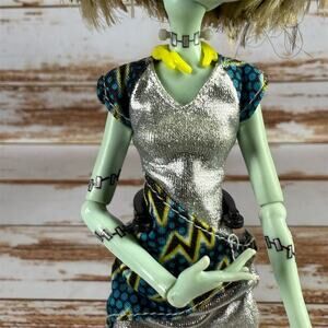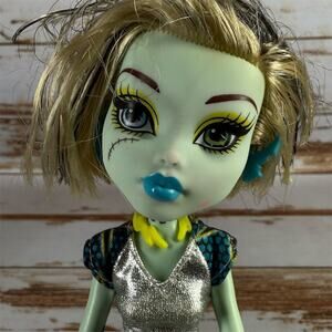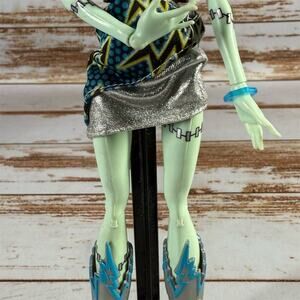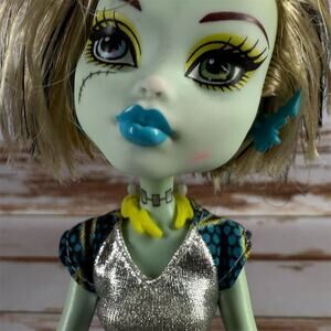 Unleash the electrifying charm of Frankie Stein from Monster High! This 12-inch fashion doll by Mattel is a must-have for fans of fantasy and fashion. With her articulated limbs and detailed design, Frankie is ready to strike a pose and bring her signature stitches to life. Her hair and eye color vary, adding a unique touch to each doll. Perfect for young fans aged 8-11, this girl doll sparks creativity and imaginative play. Please note, this pre-owned doll is missing one earring and does not include a stand.
