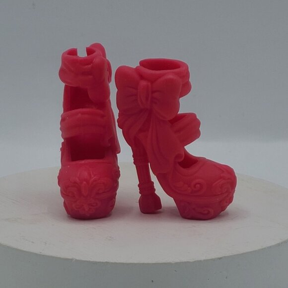 Designed to enhance your Monster High Rochelle Goyle doll, these intricately detailed pink shoes feature a dramatic bow and scroll design, showcasing exquisite craftsmanship.