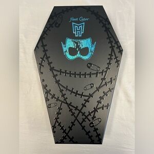 NRFB, BRAND NEW! Strut your spooky stuff with this gorgeous, brand new Monster High Haunt Couture Midnight Runway Frankie Stein Doll. Frankie comes dressed casket sharp and ready to impress in a chic blue bodysuit and tights combo accentuated with a bold black belted coat and lightning patterned mask, boots and accent jewelry and finishes the look off with a tri-colored high ponytail to show you her flash and flair. This doll also comes with a certificate of authenticity.