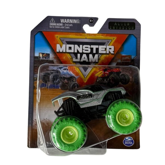 monster jam, alien invasion, monster truck toy, diecast monster truck, spin master, series 7, 1:64 scale, true metal, collectible toy truck, kids gift, monster jam truck, sealed card