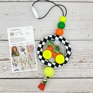 Rev up your car decor with this bold and fun Monster Jam-inspired charm featuring Monster Jam Mini Trucks! This handmade charm includes a black-and-white checkered silicone ring, smooth silicone beads, a glittery accent bead, and a miniature Monster Jam monster truck centerpiece. Topped off with a black tassel for extra flair!