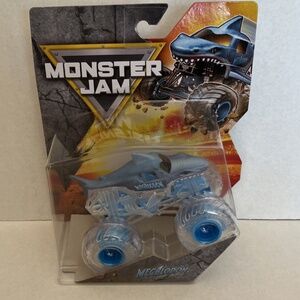 The Monster Jam Megalodon Monster Truck in Blue and Clear color is a part of the Monster Jam series. This Monster Jam Megalodon model features a Megalodon theme monster truck, making it a unique addition to any toy vehicle collection. Perfect for fans of Monster Trucks and extreme sports, this Megalodon Monster Truck is sure to provide hours of imaginative play.