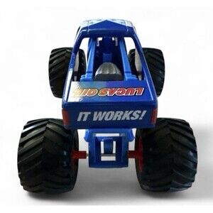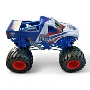 Monster Jam Official Lucas Stabilizer Monster Truck Die-Cast Vehicle 1:24. This is brand new never played with, no original box, it does have a tiny scratch on the hood, it is barely noticeable, see closeup. Stored in a smoke-free environment. Measures 7.5" in length from wheel to wheel and 4.5" in height. This weighs nearly 1 pound unpackaged so will be shipped in a box at the 1-2lb. rate.