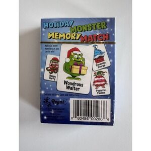 The "Monster Memory Match" card game by Regal is a strategic game designed for players aged 4 and up. With a fun monster theme, this game challenges players to match pairs of cards to test their memory skills. Released in 2020, it is suitable for solo play or with a group, making it an engaging and entertaining option for kids and adults alike.