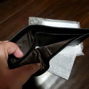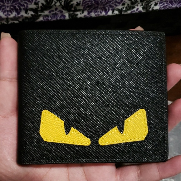 Made with PU leather. Black with yellow eyes. Has plenty of slots and 2 bill slots. Compact feel.