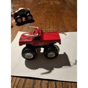 Monster Jam, El Toro Loco, Max D, Maximum Destruction, Christmas ornaments, monster truck décor, holiday decorations, shatterproof ornaments, hand-painted, stocking stuffers, fan gift, collectible ornaments, tree décor, themed Christmas, boys room, festive decorations, Monster Jam collection, ornament lot, unique holiday set, toy truck ornaments