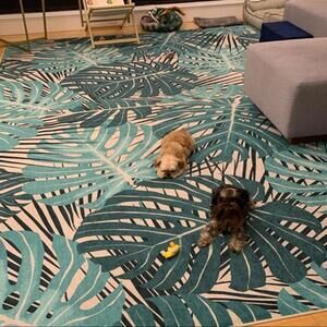 The Monstera Jade rug from Ruggable. 5' by 7'. Two piece system, includes washable cover and flat woven rug base. In excellent condition.