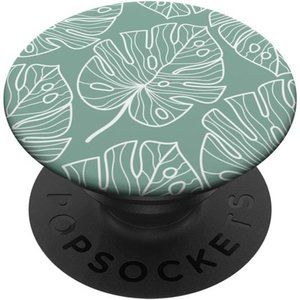 Monstera Leaves Large Botanical Plant Line art Sage Green PopSockets PopGrip