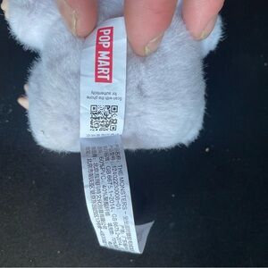 Cute vinyl figure in a fluffy bunny-eared suit. Soft light lavender fur with cream vinyl face and orange nose. Closed-eye, smiling expression. Collectible display piece. Great for shelves or desks.