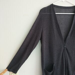 Montagut Long Line Cardigan Women M Gray Lighweight Sheer Minimalist Lagenlook