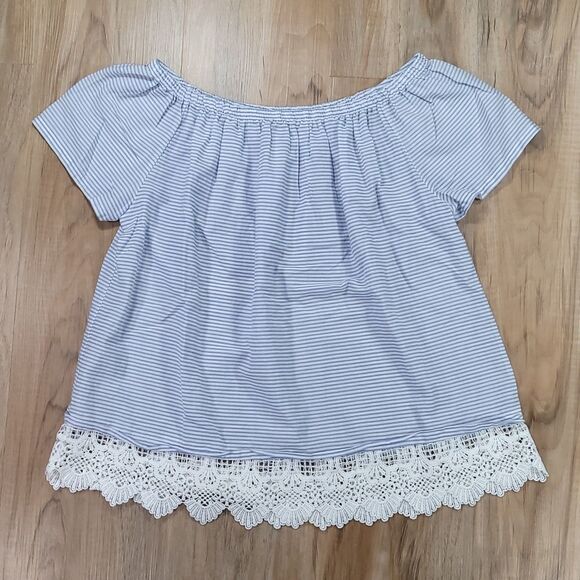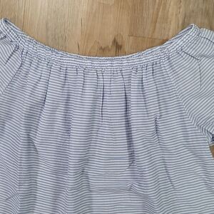 🔹️Montan Paris Blue & White Striped Cropped Off Shoulder Top Small